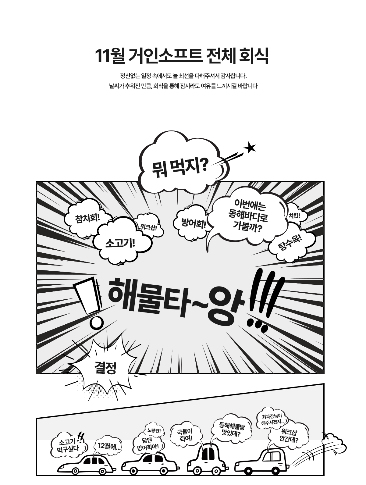 날씨가 추워진 만큼, 회식을 통해 잠시라도 여유를 느끼시길 바랍니다